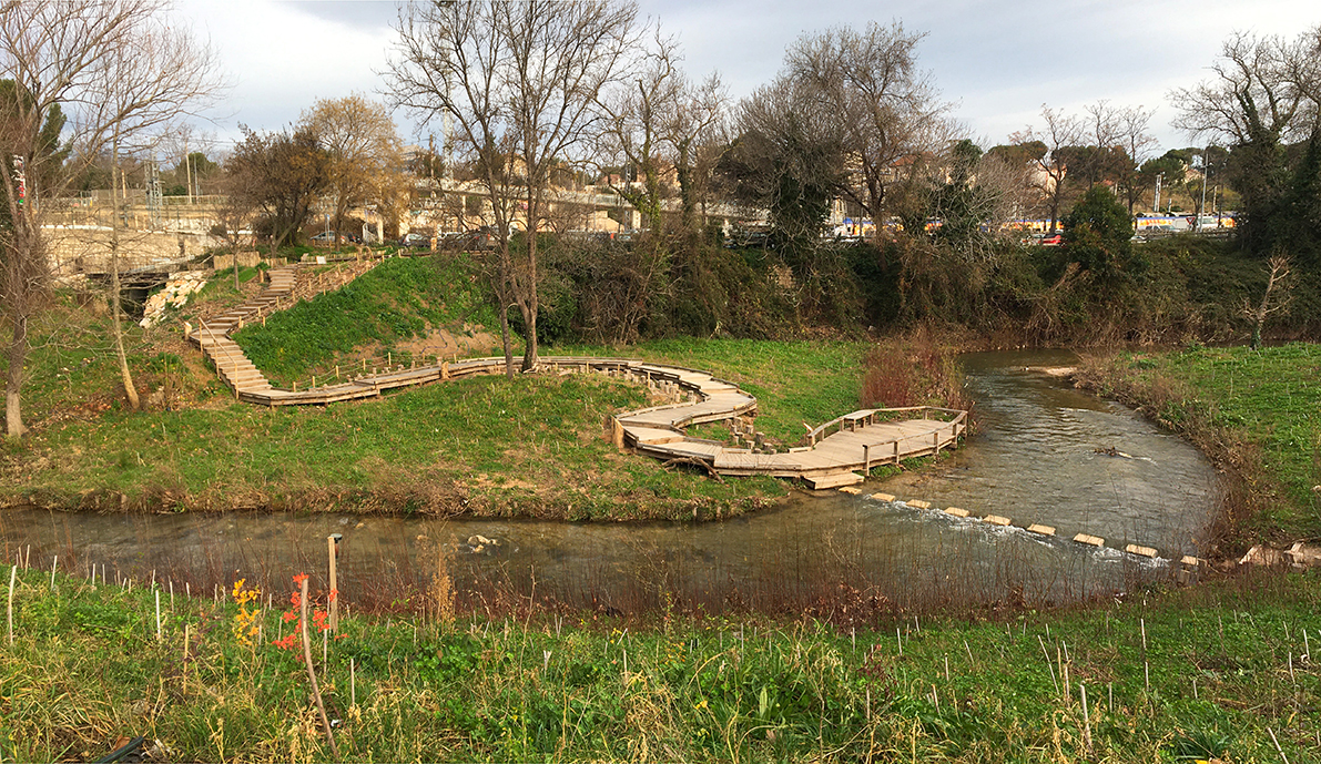 > 1 : La sécurisation des berges de l’Huveaune au niveau du risque inondation et la renaturation écologique du fleuve, dans le cadre du projet GEMAPI,